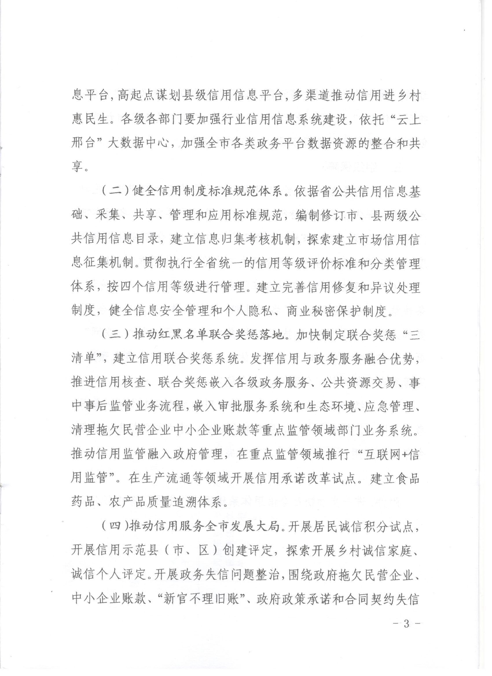 邢台市社会信用体系建设领导小组 关于印发进一步加快社会信用体系建设工作推进计划的通知