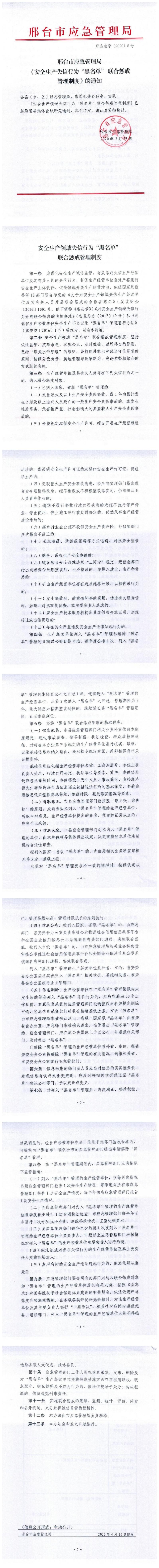 邢台市应急管理局 《安全生产失信行为“黑名单”联合惩戒 管理制度》的通知